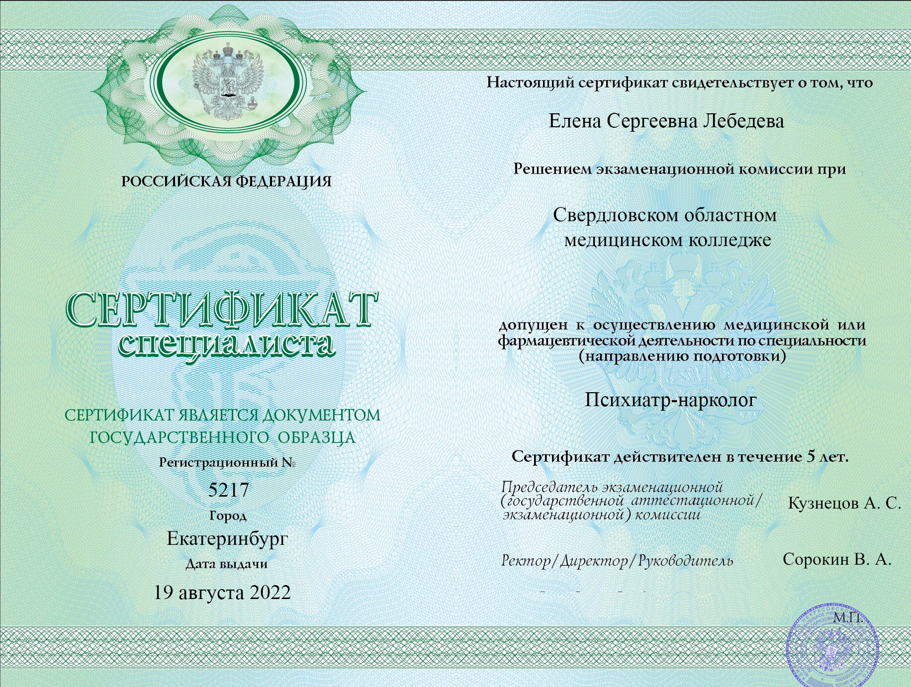 Елена Сергеевна Лебедева врач нарколог клиники доктора Стукаловой в Мостовском